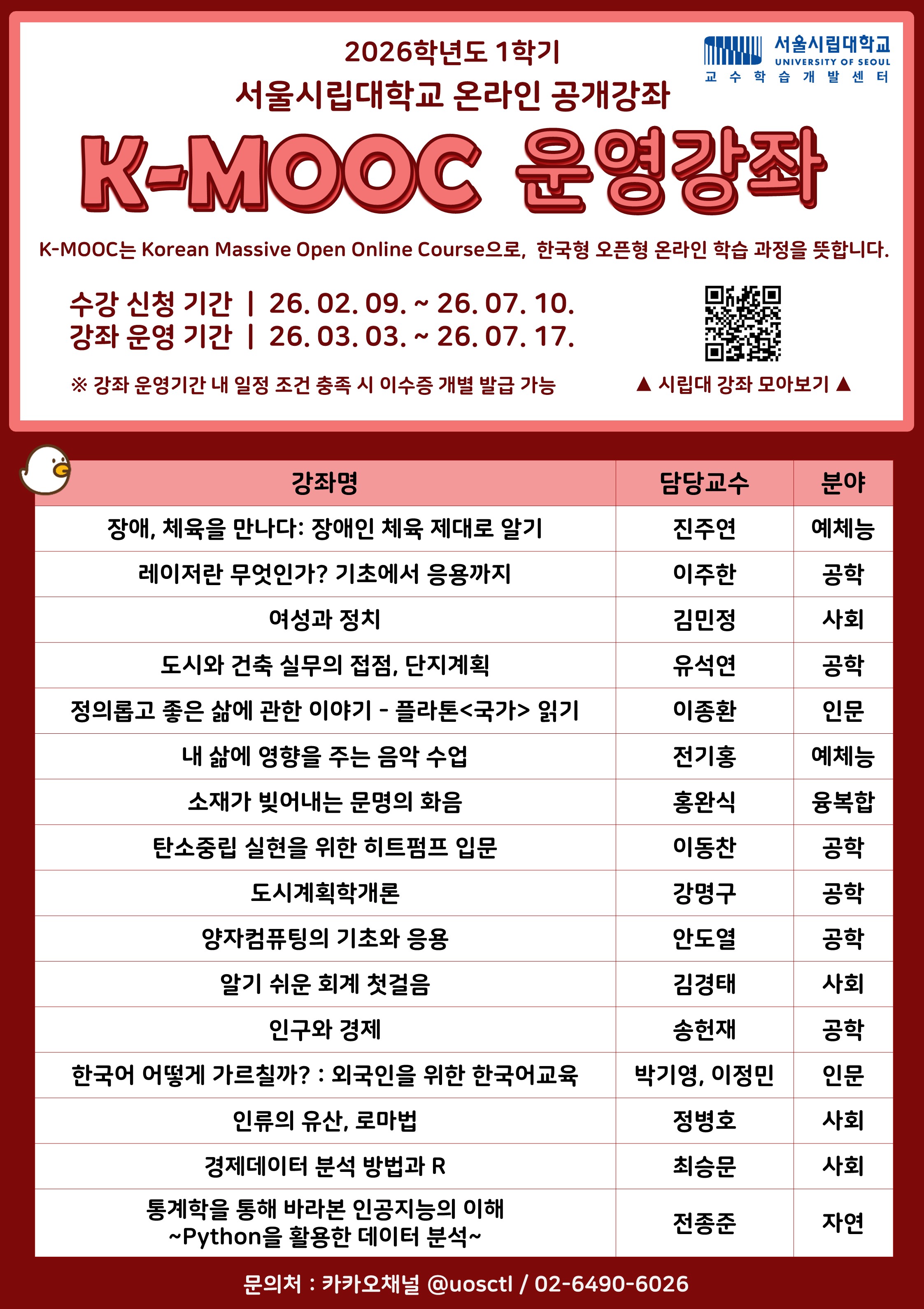 서울시립대학교 2026년 1학기 K-MOOC 강좌 수강 안내