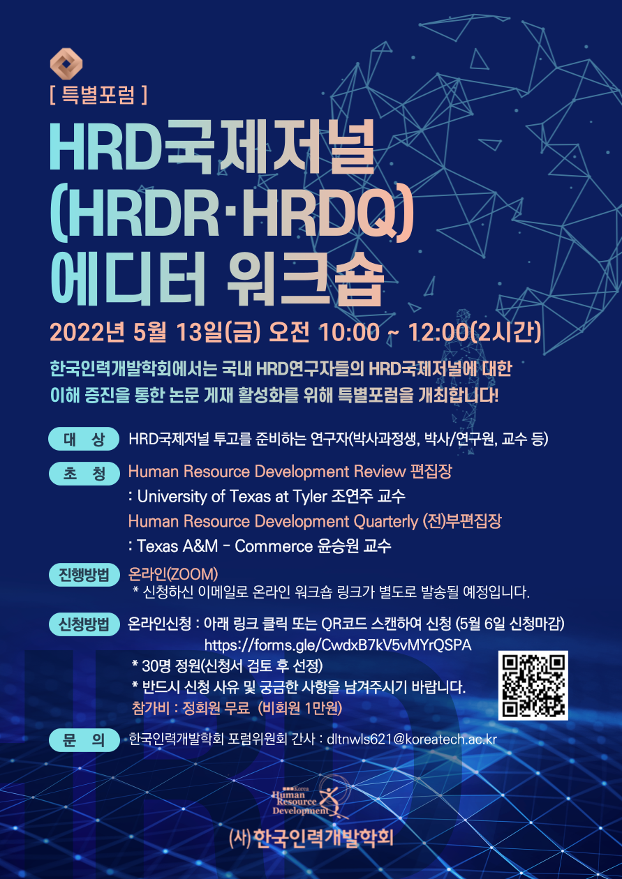 - [한국인력개발학회] HRD 국제 저널 에디터 워크숍 신청 안내